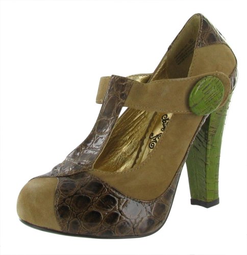 Walk on the wild side, with the Wild Ways by Naughty Monkey. These pumps feature leather and suede uppers, faux snake skin print on patent leather, retro T-strap with large button detail, and distressed leather on 4" heel. Style: NMW0119